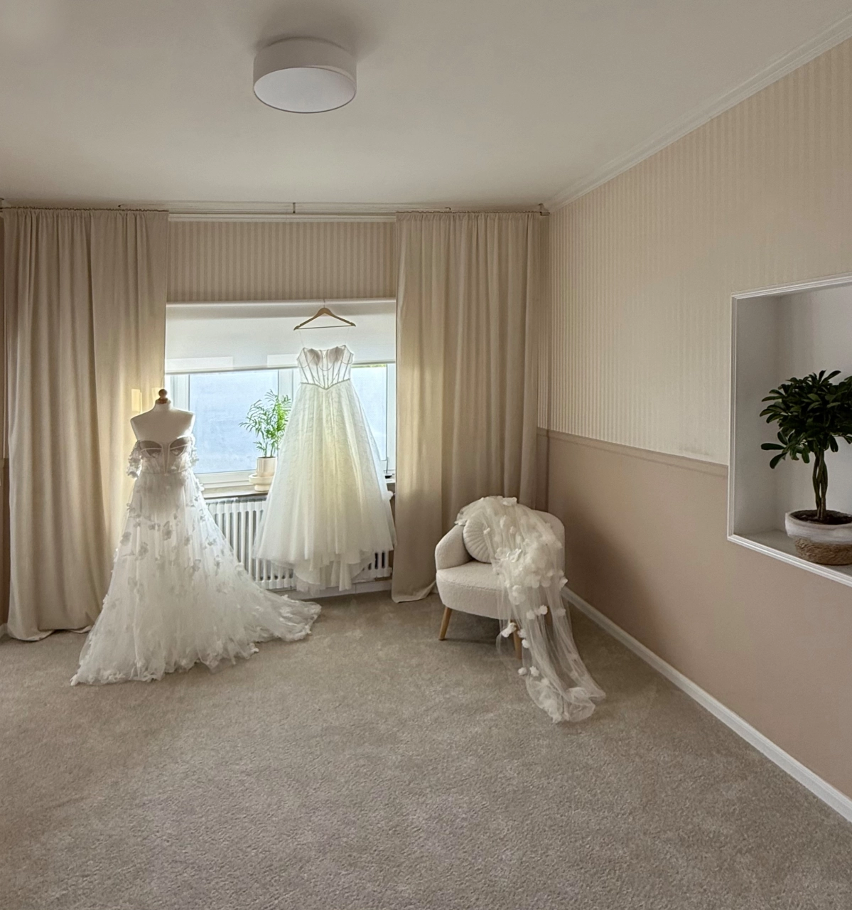 Genieße eine persönliche Beratung in entspannter Atmosphäre und entdecke dein Brautkleid, das perfekt zu dir und deinem großen Tag passt – mit oder ohne Wartezeit.